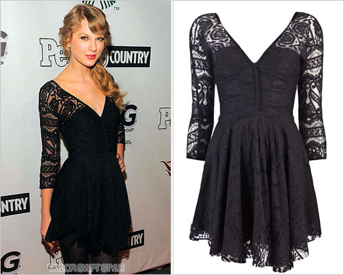 Before celebrating her big win – for the second time – as the CMA Entertainer of the Year, Taylor slipped into this beautiful, fitting Rebecca Minkoff Frida Lace dress.