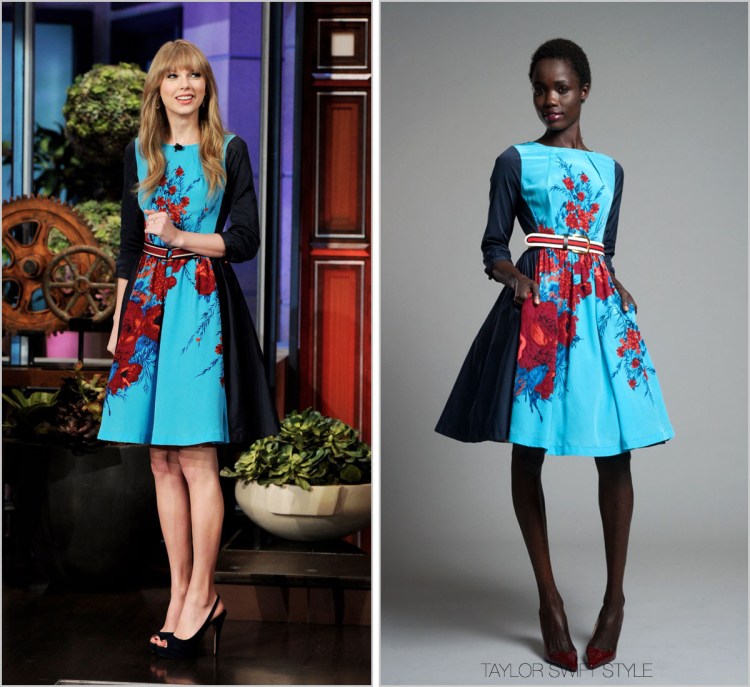 It’s so nice to see Taylor branching out in pops of colour, aside from her go-to shade of red. Love this floral frock.