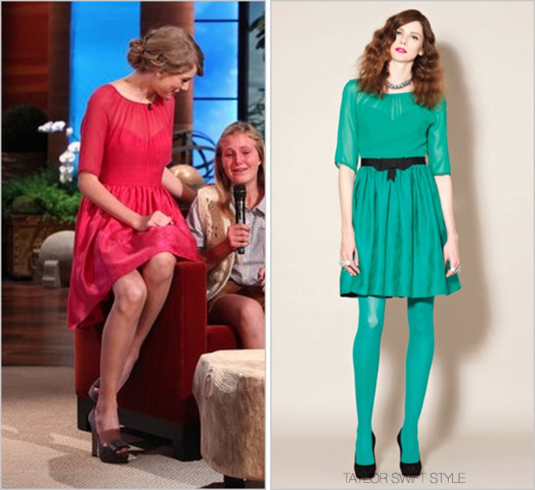 Obviously, Taylor’s dress is in a lovely shade of red versus mint green.