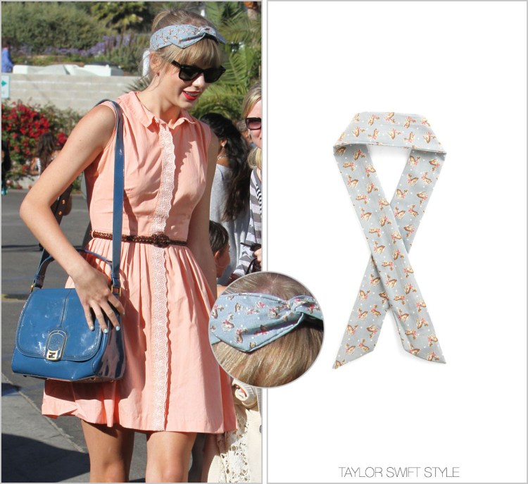 Last summer, Taylor was obsessed with ModCloth’s headbands. She wore their ‘Through the Wire’ hair accessory in yellow floral, red dot and yellow dot. Just to name a few.