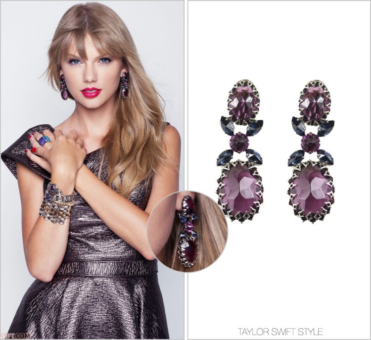 One of Taylor’s favourite jewellers, the vintage and retro-inspired House of Lavande, provided these gorgeous sapphire and amethyst earrings to her Bliss spread.