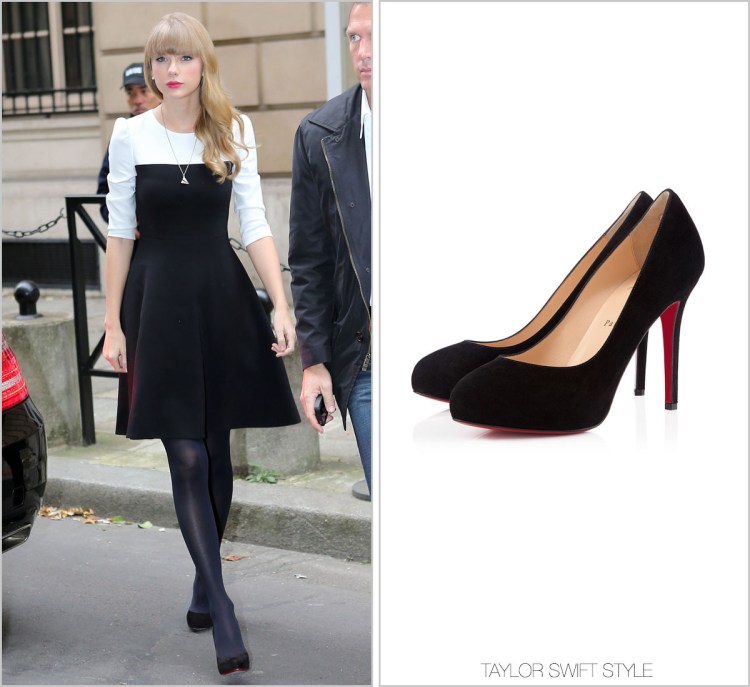 Taylor finally opted for a sweet pair of high-heeled pumps instead of the kitten heels by O’Jour she’s been stepping out in lately.