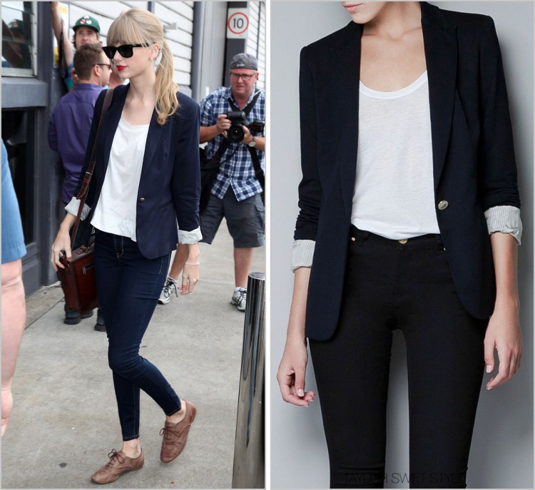 Probably one of my favourite Taylor candid outfits we’ve seen so far. Taylor looks perfectly and casually put together in this Zara blazer and some dark-wash jeans.