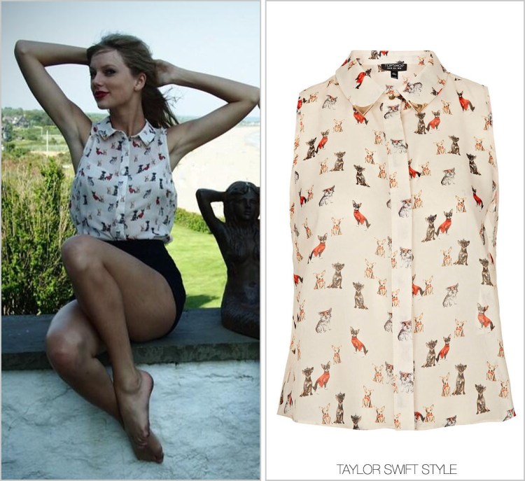 $20.99$17.99Knowing Taylor, you would think that the adorable sleeveless top she wore today with Selena in Connecticut would be covered with cute cats. I was shocked to discover the print was more canine in nature.