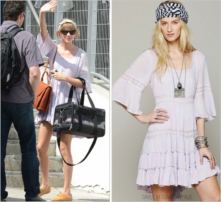 Now that she’s back, Taylor looked lovely and breezy in this Free People dress. If it looks familiar to some of you TSS-ers, she wore the white version during the very first ever Club RED in Omaha on night one of the tour. How fitting to wear as she comes back to it!
