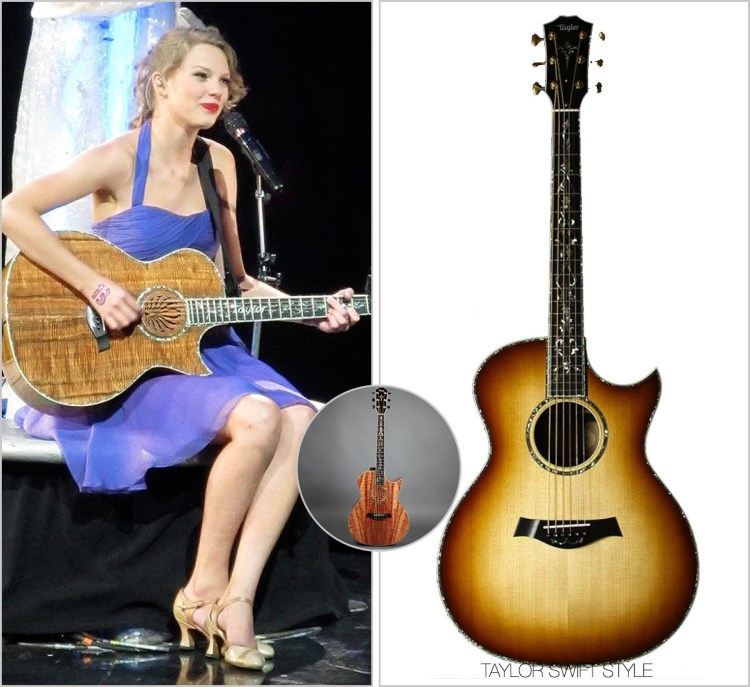 Taylor has had this guitar since her childhood and is a custom Presentation Series Grand Auditorium acoustic guitar. Composed of Taylor’s signature koa wood, this acoustic has also been fitted with a Byzantine inlay in the neck – another of Taylor’s signatures – as well as her name and a Florentine cutaway.