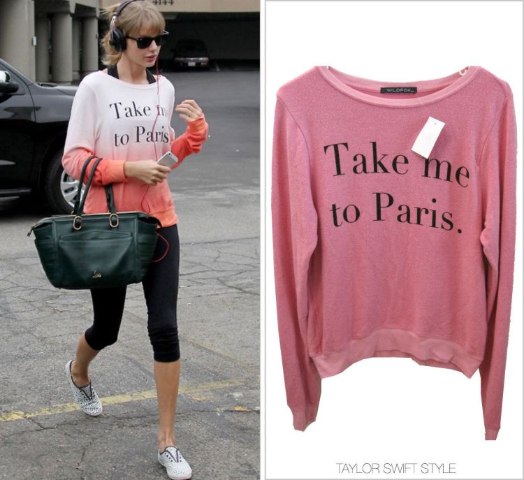 Updated with a purchase link to the exact sweatshirt Taylor is wearing.
