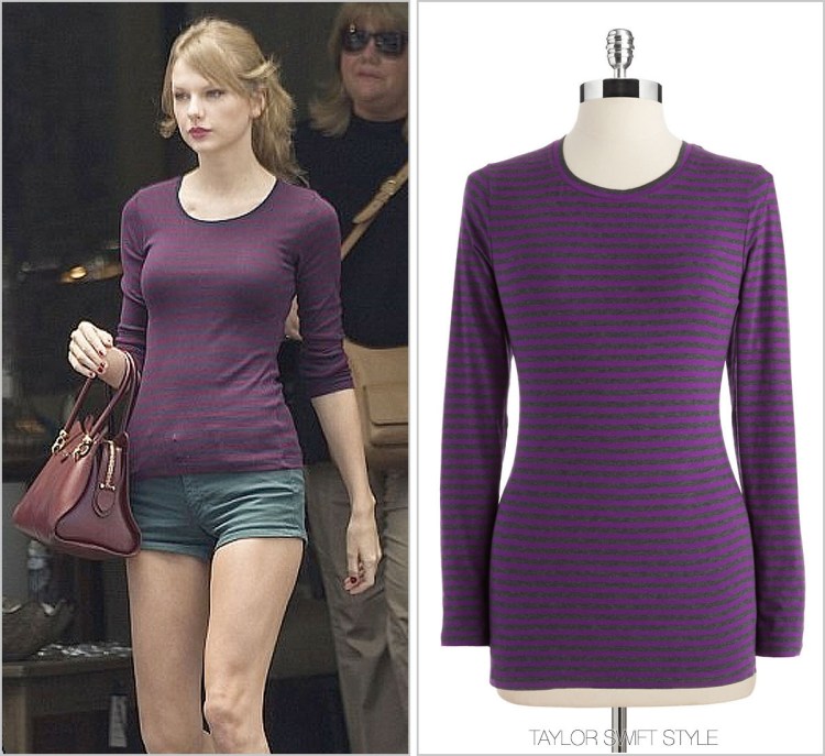 Get Taylor’s purple striped tee she wore while out in shopping in Auckland – this Lord & Taylor one is half price right now!