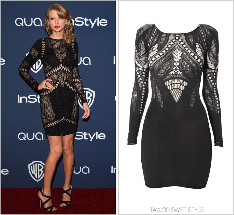 I normally try to keep GTLs under $50, but for anyone who wants a sexy night out, this netted lace dress is a close second to Taylor’s dress.
