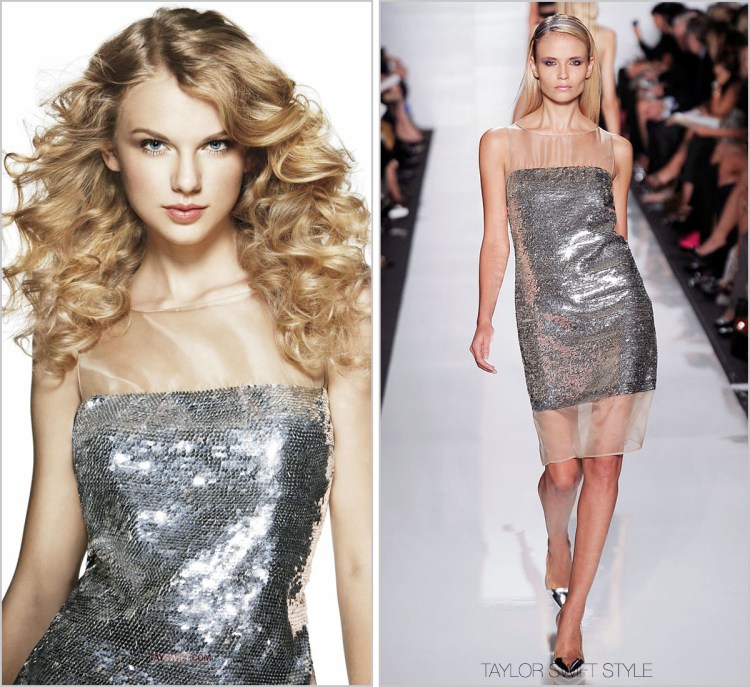 For one of the two cover shots for this issue, Taylor wore this sparkly (shocker) and illusion-trim Michael Kors shift dress. Big props to hair stylist Ken O’Rourke who teased Taylor’s curls into the huge, voluminous rings you see here. Gives the whole vibe a very 70s-disco feel.