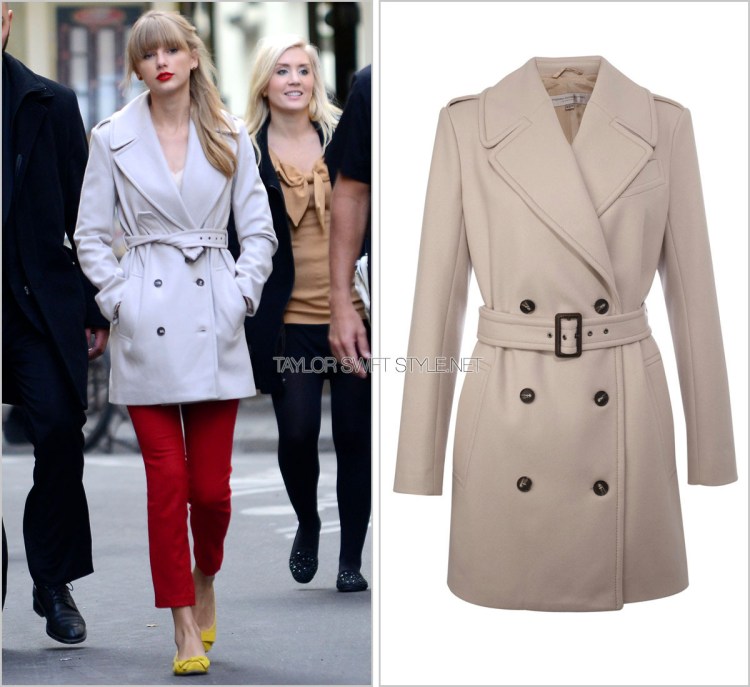 In between takes for her “Begin Again” music video – shot in Paris – Taylor bundled up in this classic (it’s in the name) French Connection peacoat. I love the cut on the lapels of this coat and the belt for waist-cinching. I also love that it’s discounted almost $250 from its original price!