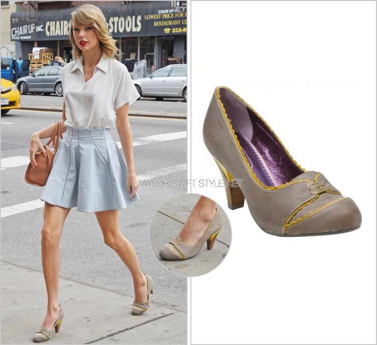 I know a lot of you have a love/hate relationship going on with Taylor’s shoe game (trust me, I feel you on that) but for once I actually really enjoy her shoe choice here. The little pops of colour via the scallop trim and heel insert brighten up this neutral shoe.