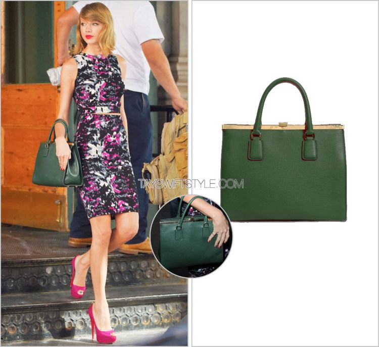 For new TSS-ers, you’ll probably see me at some point or another inadvertently scream the word GREEN and twitch because it’s my favourite colour to see Taylor wear (or, in this case, carry).