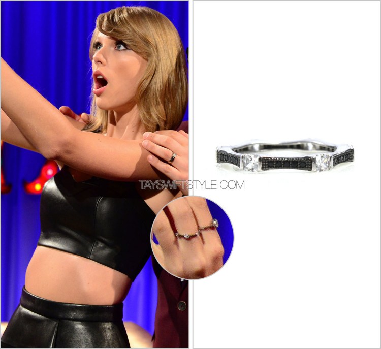 Though I haven’t yet found Taylor’s uber-sexy leather crop top and skirt here that she wore during her Alan Carr appearance, I have found one of her rings! This one another pave band with Swarvoski crystals by Hysteric Co.