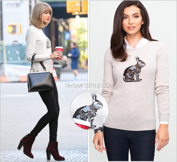 I’m pretty sure I can already hear the heartbroken sobs of TSS-ers upon finding out that Taylor’s bunny sweater (a bunny sweater) is sold out.
