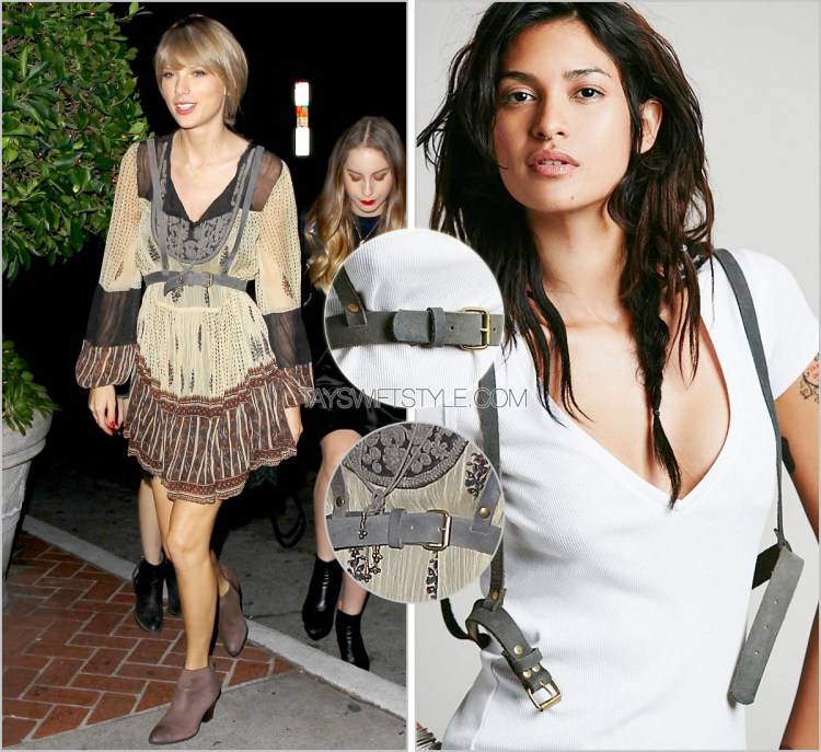 In addition to a dress by the brand, Taylor added a leather harness by Free People to her free-flowing boho dress.