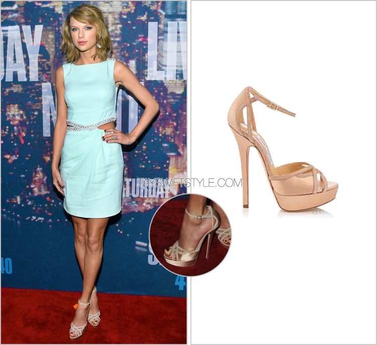 Taylor’s heels are from the current Awards Season collection and will be made availably shortly.