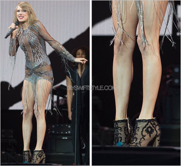 Taylor has been turning to Stuart Weitzman a lot lately for her performance shoes (hint hint). For her set at BBC Radio 1′s Big Weekend, she wore a glitter-encrusted pair that were my personal standout for the outfit.