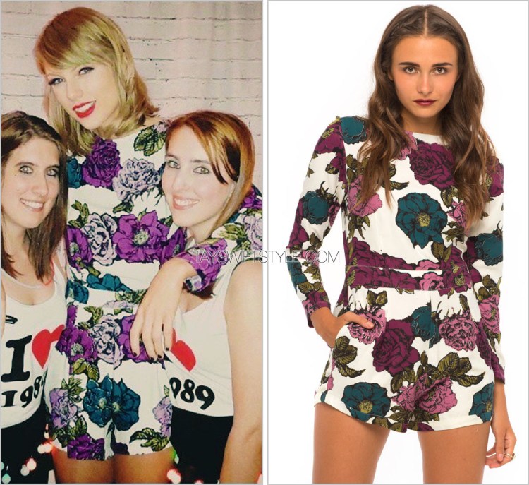 Taylor lately has been loving the long sleeved romper look, choosing to highlight her killer legs in cute playsuits like this one.