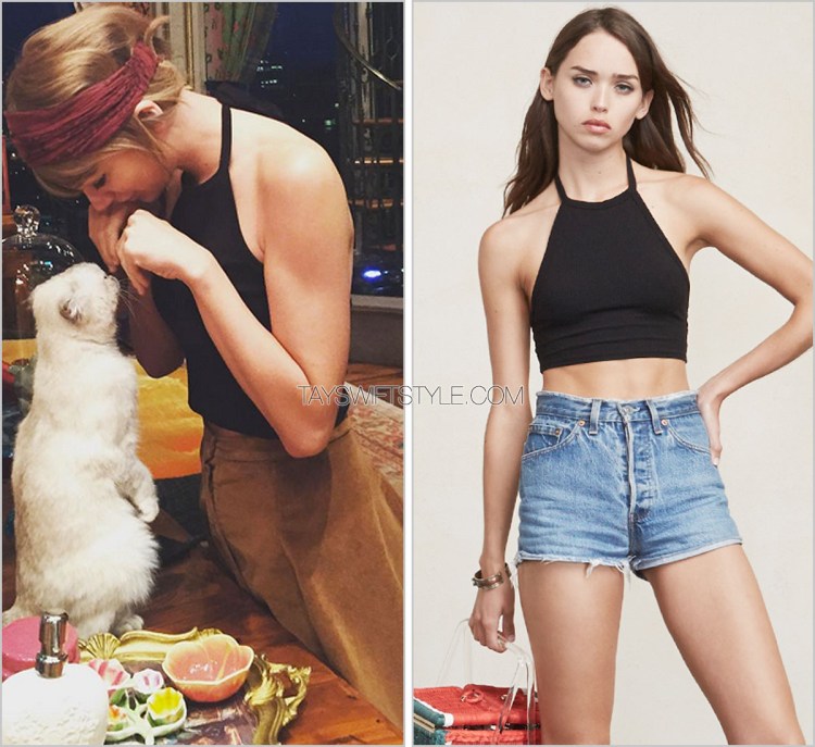 Simple, basic items are a standby of the Brandy Melville brand and I at first thought Taylor may have worn both a top and bottom by them. Turns out, she’s wearing another of her favoured brands — Reformation.