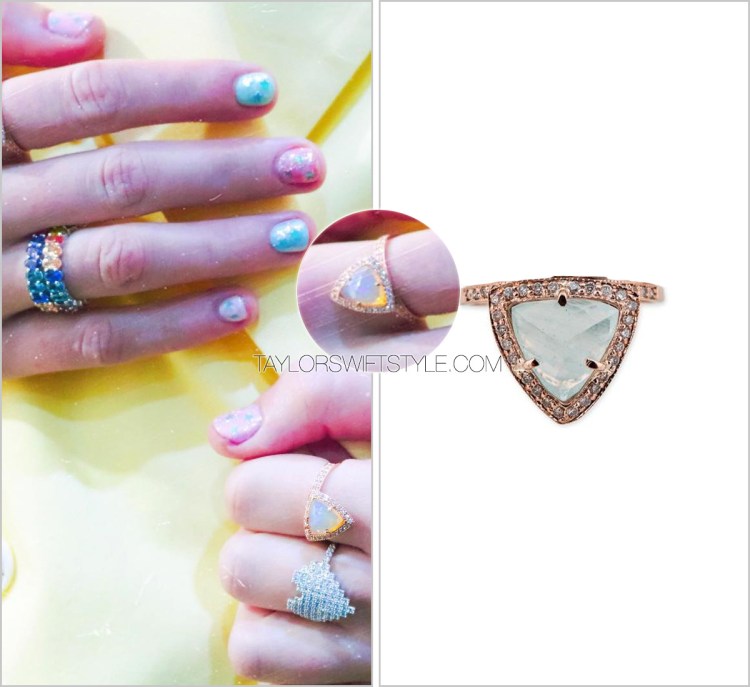 Taylor wore a pair of these stunning turquoise triangular shaped rings from Jacquie Aiche — a jeweller she’s worn on a few occasions.