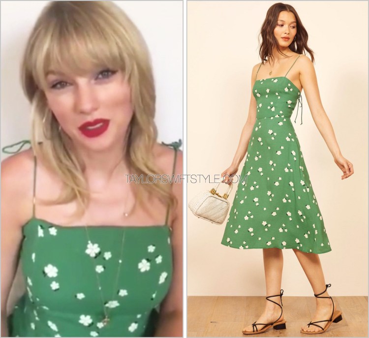 As many of you know, Taylor Swift in green lands in (at least) the top five reasons why I live. It’s made even better when it’s a beautiful, strappy, summery dress like this – made by one of her longtime favourite brands Reformation.