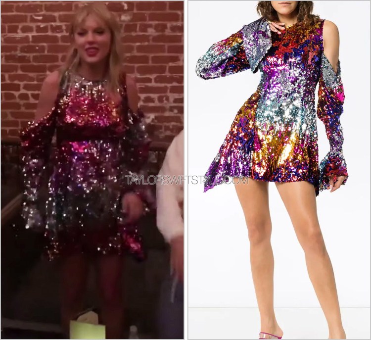 Halpern ‘Sequinned Cold Shoulder Mini Dress’ – $1,498.00 $598.00