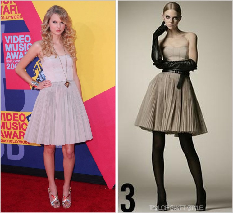 Also a fun trip down memory lane, earlier in the evening Taylor played style correspondent on the red carpet wearing a different dress and flats to accomodate then-boyfriend Joe Jonas.