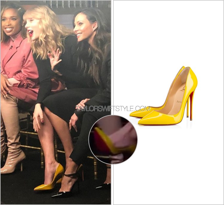 Instinct told me these were Louboutin “So Kate” pumps and I was delighted that in a preview for the interview (set to air tomorrow) that Taylor crosses her legs and we get a confirmed look at that iconic red sole.