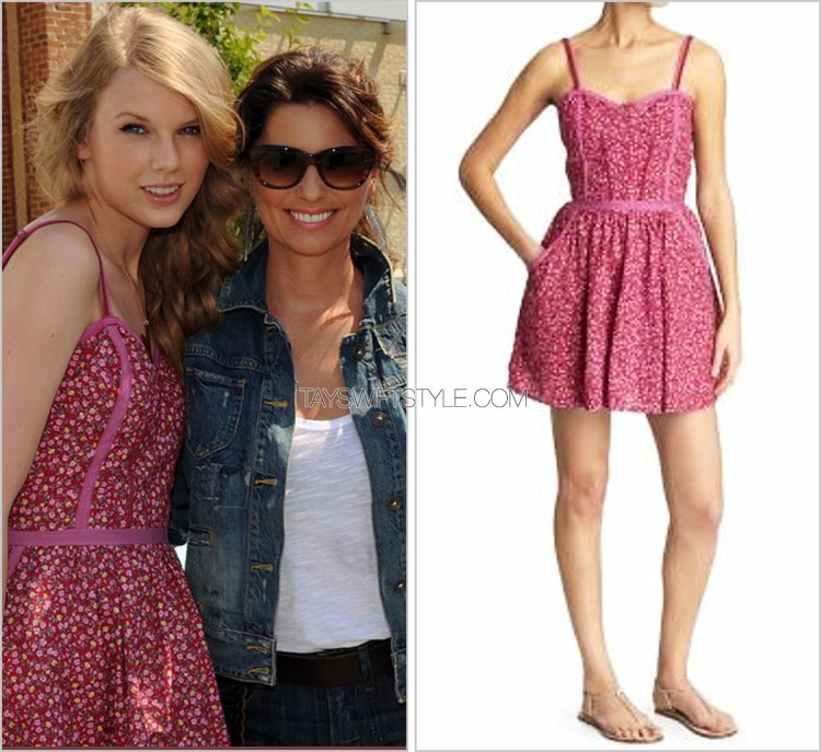 For that year’s CMT Music Awards, Taylor teamed up with country music superstar Shania Twain to film a Thelma & Louise-style video to air during the show. Her sweet pink dress here is by Lucca Couture. Taylor, in all likelihood, picked this one up at an Urban Outfitters as she is a longtime fan of the retailer.