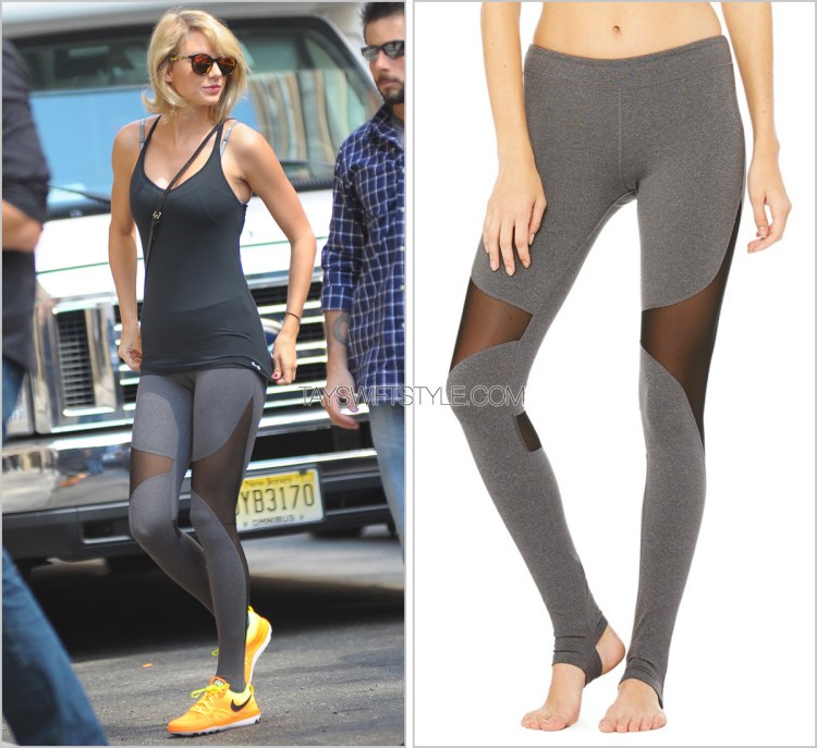 Taylor continues to slay athleisure gym style in another set of leggings by yoga brand Alo. Again, I’d wear these leggings to the gym in a heartbeat.