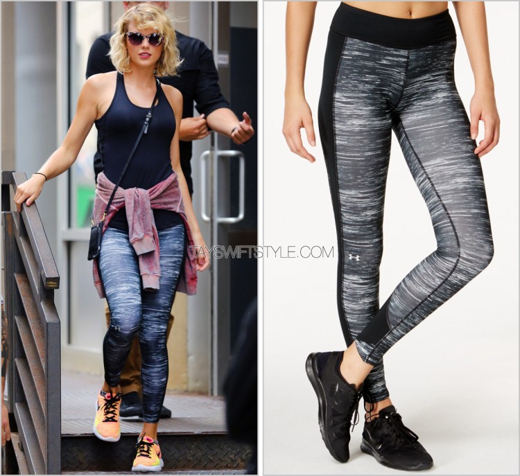 Taylor hit up the gym today wearing a new pair of UA leggings in a cool metallic heather print.
