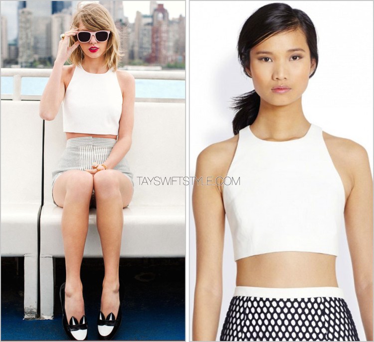 Here, Taylor is wearing a windowpane checked sweater from Theory.