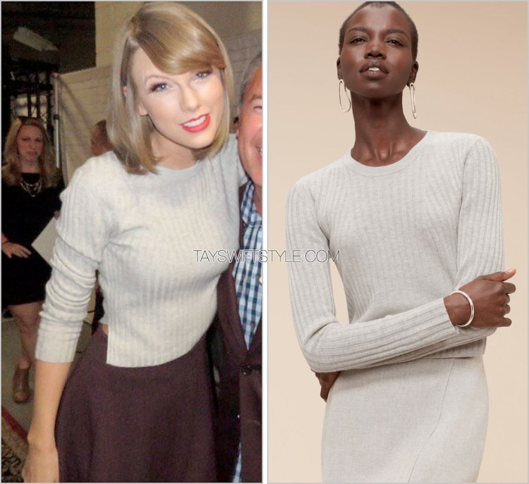 Taylor’s beautiful summery dress is this sheer, faux-wrapped number from Aritzia. There are so many components of the dress I love, from the way that it drapes, to the light fabric, to the subtly sexy slit.