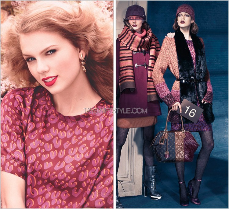 Here, Taylor wears the dress from Look 16 of Louis Vuitton’s Pre-Fall 2011 collection.
