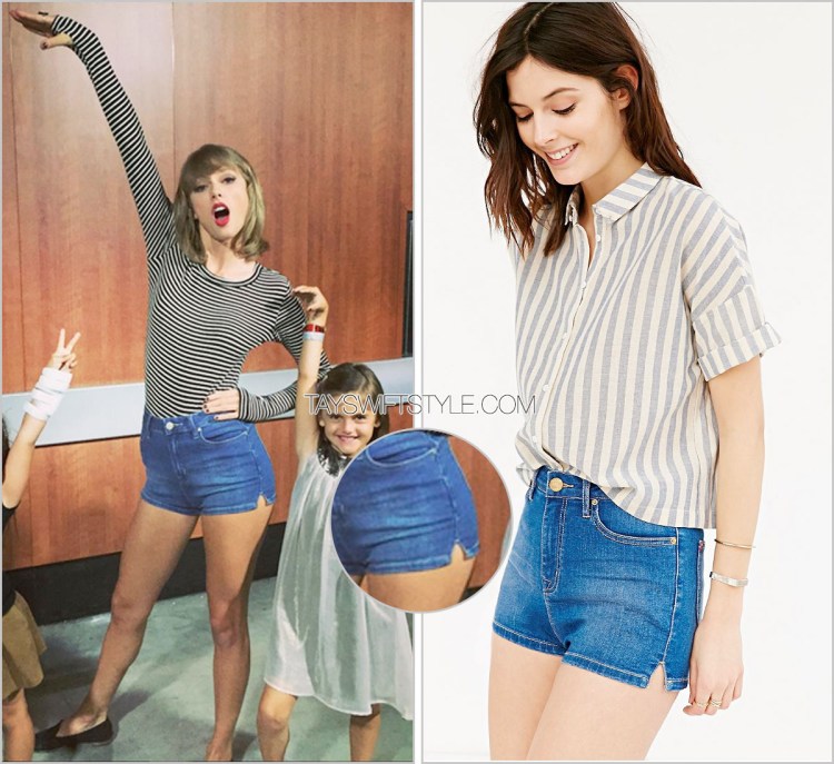Taylor has worn this striped top a few times while posing backstage with fans during the 1989 Tour.