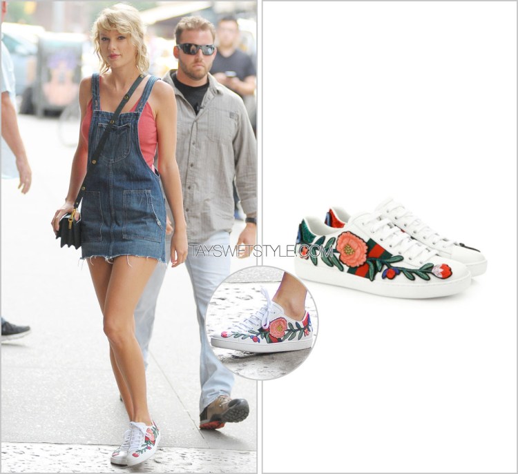 Mixing Taylor’s love for floral prints with her latest obsession with sneakers, how do you guys feel about her new Gucci kicks?