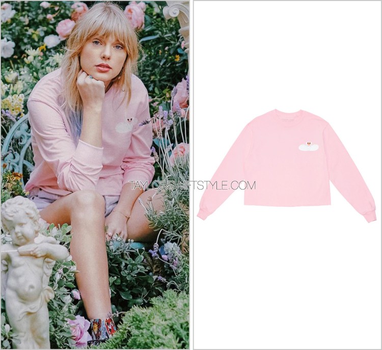 Taylor Swift ‘Pink Swans Long Sleeve Crop Top’ – $45.00