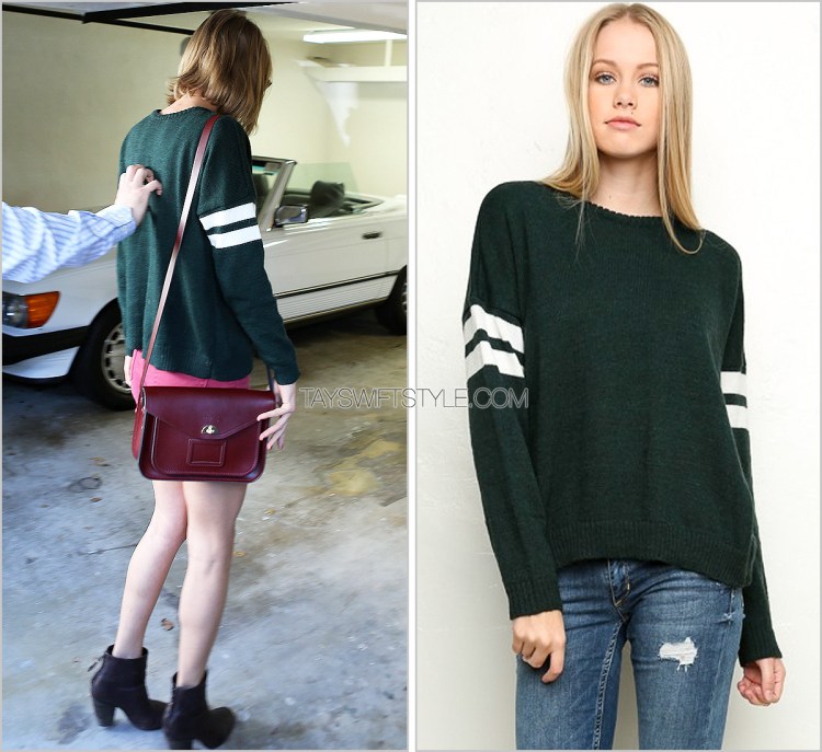 I missed out on originally posting this back in January as we only saw the hemline of Taylor’s corduroy skirt. However, after stepping out in the brown and black versions of this skirt I think it’s not a pretty safe bet that this is the red version.