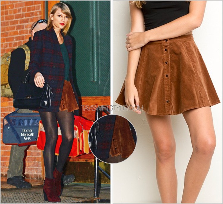 Taylor went out to dinner in a monochrome outfit that included this Brandy Melville skirt which she also owns in brown.