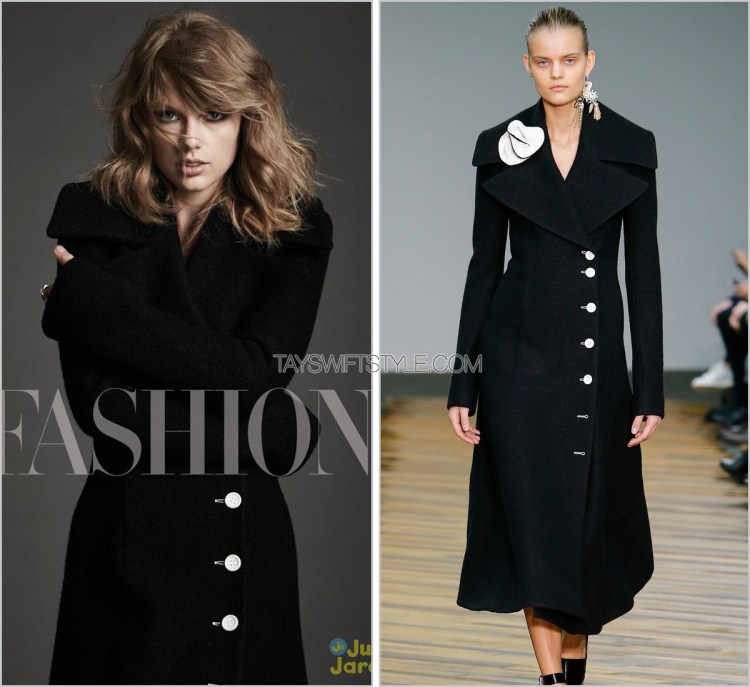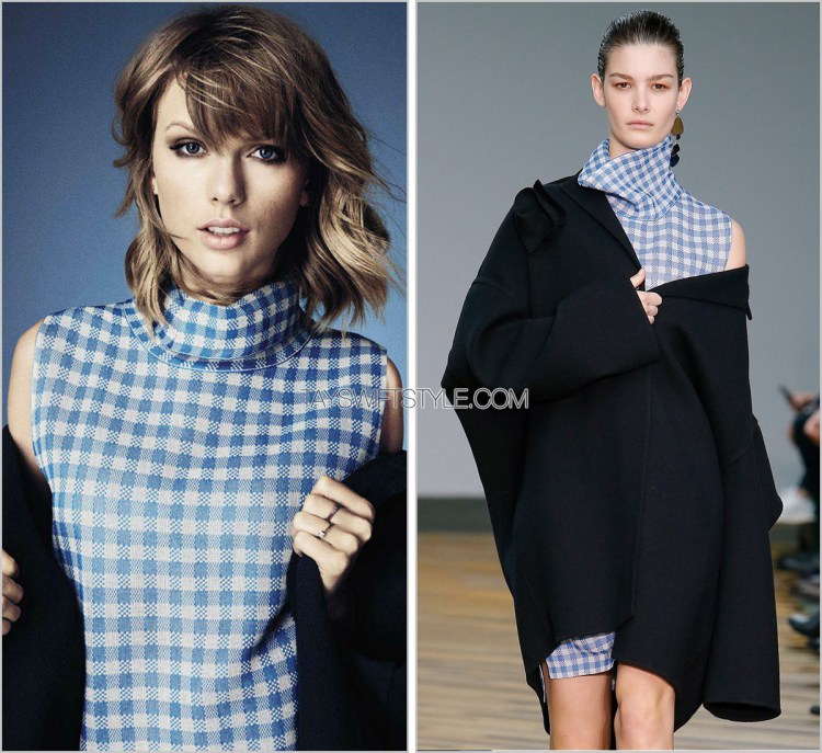 I’m extremely happy to see Taylor wear one of my favourite French brands in this appropriately French magazine. A gingham turtleneck sleeveless dress matched with the same coat worn on the runway.