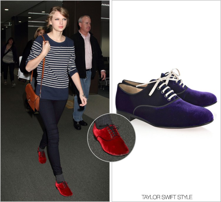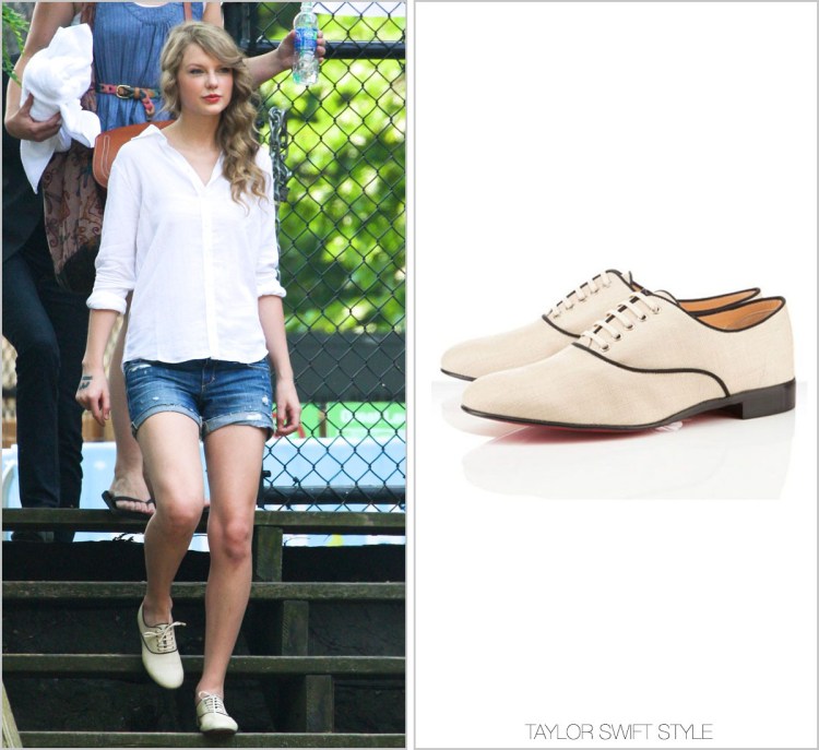 Many of you have lamented about how you wish Taylor would wear jeans and flats in candids. So here’s a casual double whammy of a 20-year-old Taylor walking around Nashville in a perfectly casual outfit hit with a shot of red courtesy of her Louboutin oxford flats.