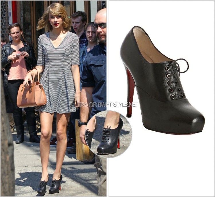 She looked super chic in an almost-entirely black and white ensemble. Including these killer lace up Louboutin booties.