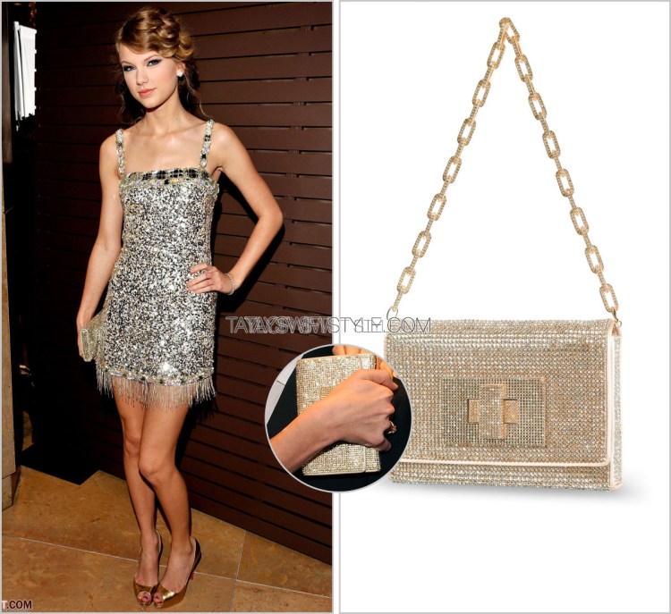 I’m not personally crazy about mixing metals so I’m fairly confused as to why a gold pair of Taylor’s favoured ‘Very Prive’ pumps was paired with her otherwise all-silver outfit. Especially as she’s worn the silver versions of these pumps multiple times.
