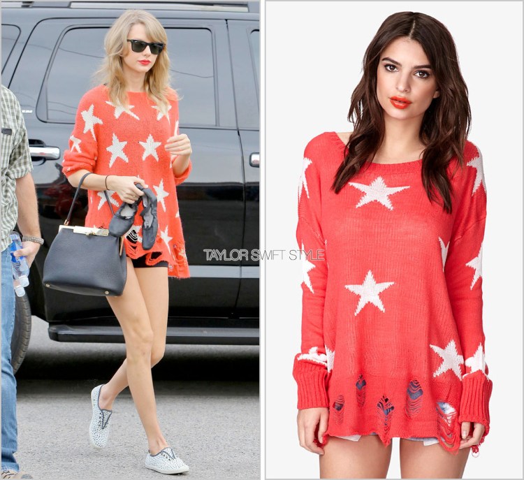 Taylor left the gym in NYC wearing a button down blouse featuring what I originally thought was a simple polka dot print actually turned out to be far more charming – tiny little sailboats!