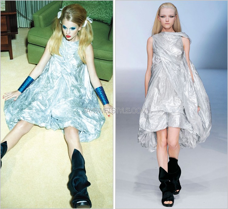 Probably one of Taylor’s most interesting and least talked about shoots was with New York Times Style magazine T. All of Taylor’s setups in this shoot featured a weird, futuristic doll-like take on fashion.
