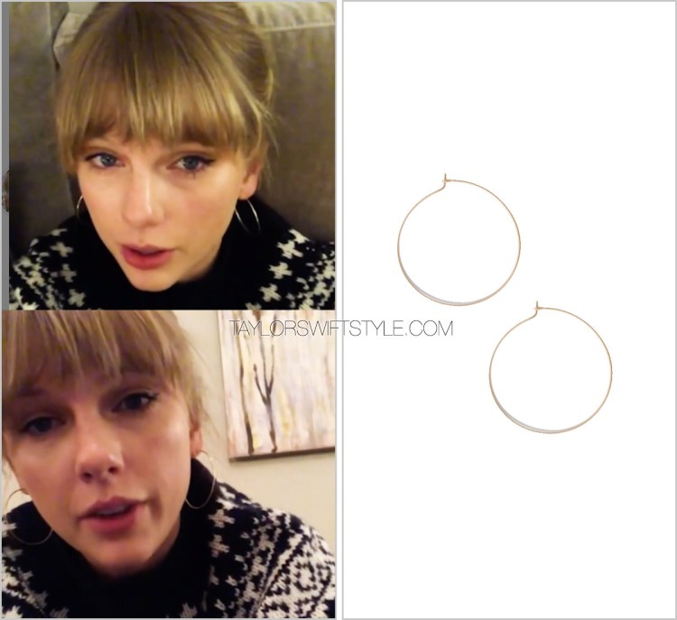 To announce her new Christmas song on Instagram, Taylor wore an appropriate festive fair isle sweater with thin gold hoops which she confirmed to a fan were these by ABLE x Minka Kelly.