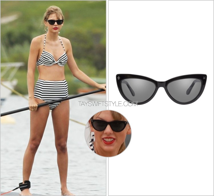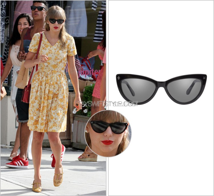 Taylor continuing to flex the depths of her closet – this pair of sunnies is quite the throwback. They first debuted around May 2013 and were worn in May 2014.