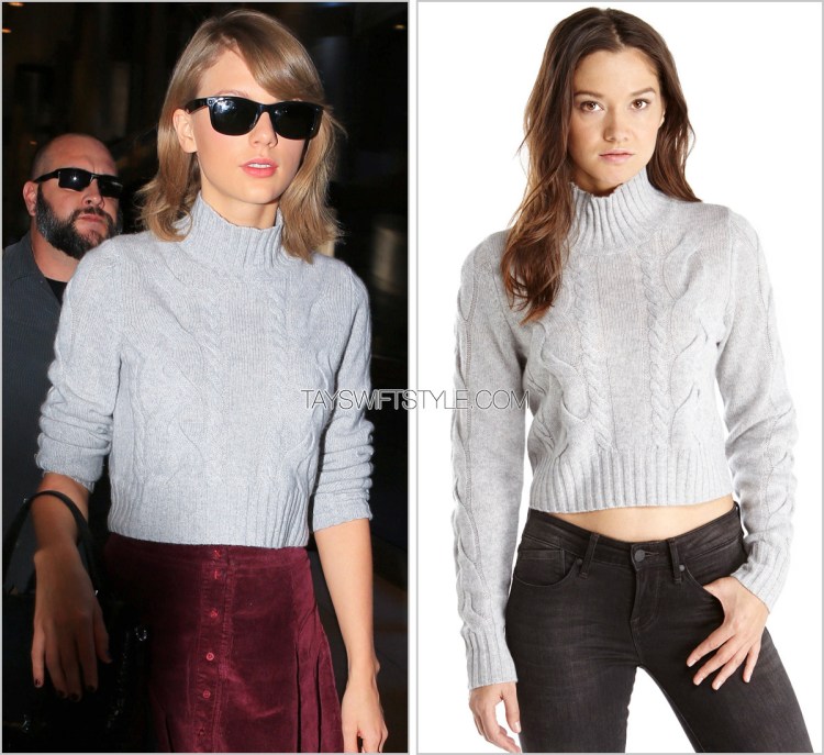 Even though it’s sweater weather, I’m sad to say that Taylor’s sweet cropped cable knit sweater worn here is unfortunately sold out.