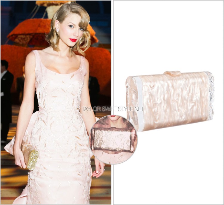 Celebs have been loving Edie Parker’s customizable clutch. Taylor happened to carry one spelling out her latest single in red pearlescent font.